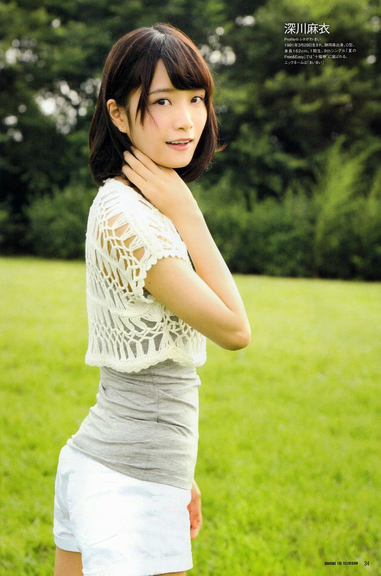 Fukagawa Mai, Nandome no Aozora Ka? 2014: Information Nickname: Ito Marika | Kawago Hina | Kawamura Mahiro | Matsumura Sayuri | Nagashima Seira | Nakada Kana Mai Fukagawa; Mai Fukagawa. Hina Kawago; Mahiro Kawamura; Hinako Kitano; Hina Higuchi; Mai Fukagawa; Minami Hoshino; Miona Hori; Sayuri Matsumura; This entry was posted in Magazine, Nogizaka46, Photo and tagged Fukagawa Mai, Kawago Hina, Nogizaka46, Photo, Takayama Kazumi, Wakatsuki Yumi, 乃木坂46. Nogizaka46 members Fukagawa Mai and Kawago Hina has a photo collection at magazine "GTV" (GRAVURE THE TELEVISION) issue 2014 vol. 34. This issue also feature: